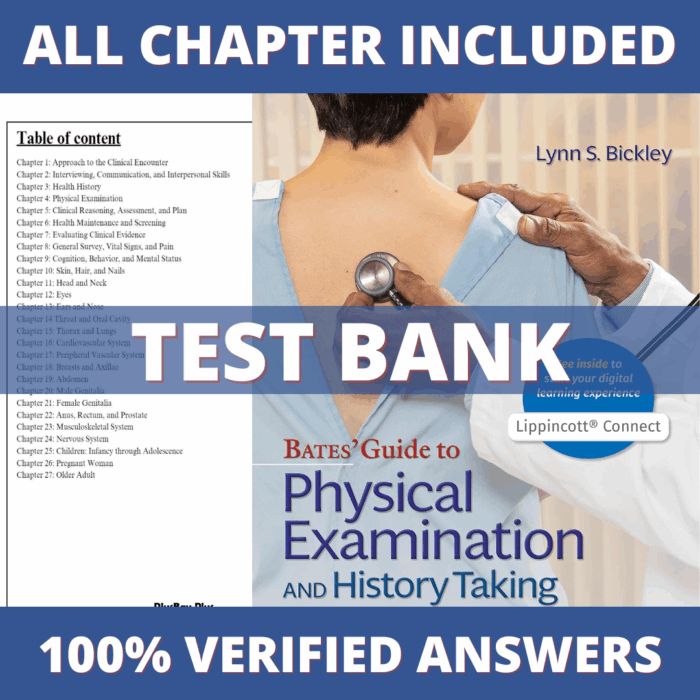 Test Bank for Bates Guide To Physical Examination and History Taking, 13th Edition (Bickley, 2021)